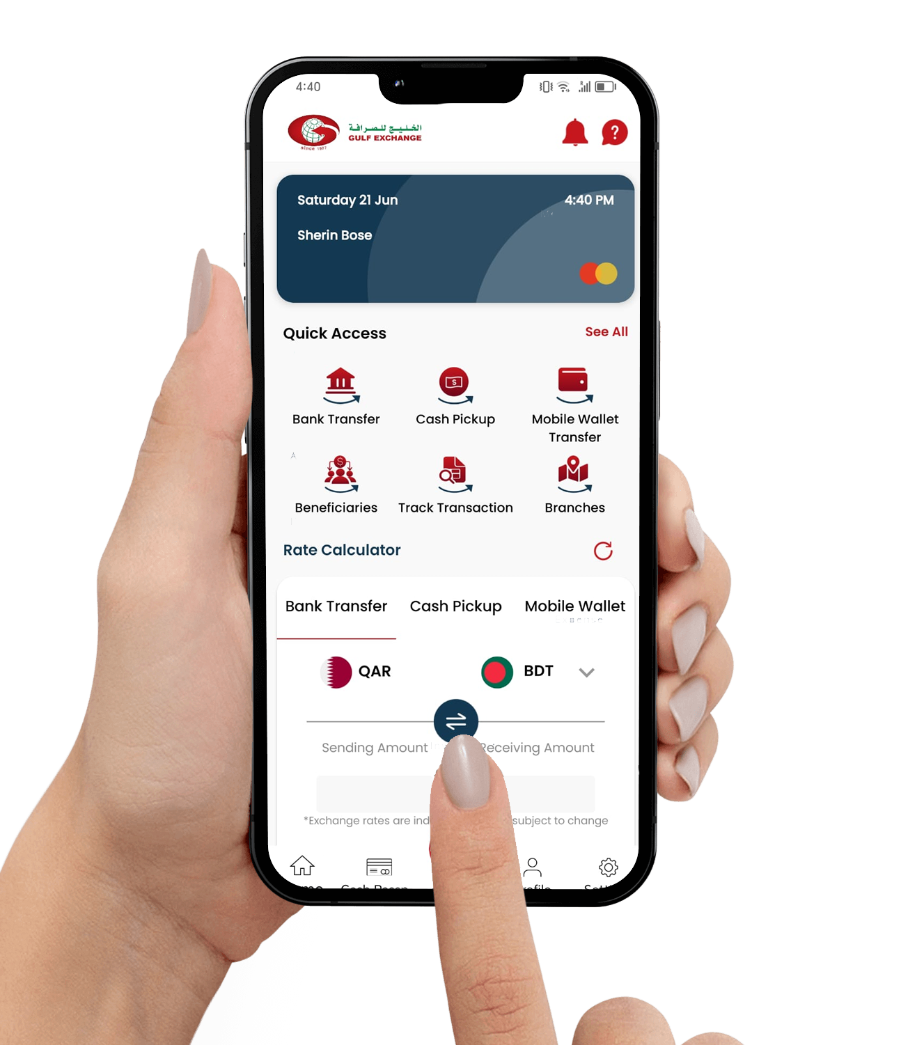At Gulf Exchange, customer experience isn’t just a goal—it’s our standard. We combine cutting-edge financial technologies with a human touch, making every transaction seamless and secure. Our mobile app empowers users to send money anytime, anywhere, with real-time exchange rates and low transfer fees. From individual remittances to corporate solutions, we’re committed to helping our clients achieve their financial goals with confidence. Join the millions who trust Gulf Exchange—where your money moves with purpose.
