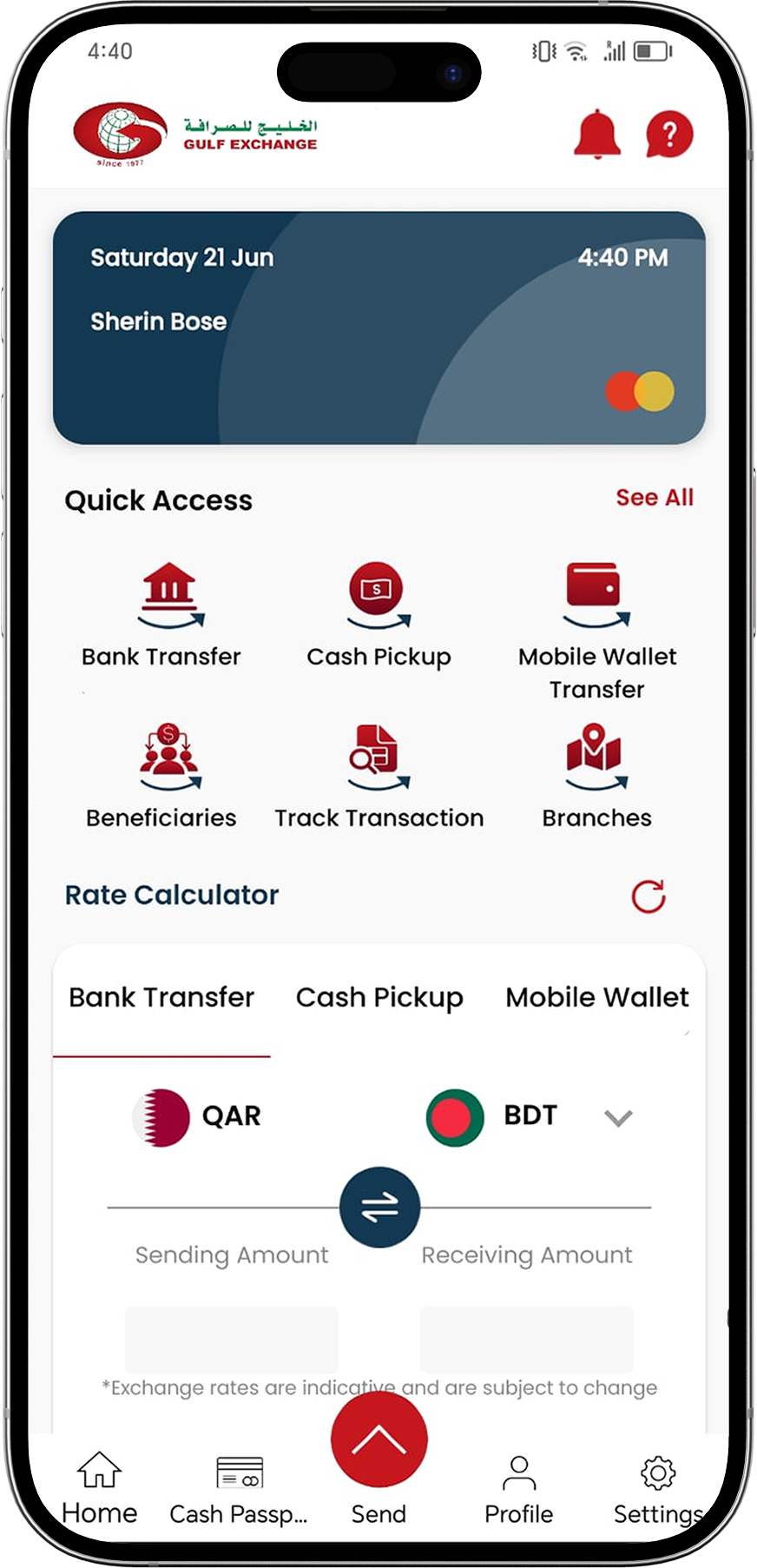 At Gulf Exchange, customer experience isn’t just a goal—it’s our standard. We combine cutting-edge financial technologies with a human touch, making every transaction seamless and secure. Our mobile app empowers users to send money anytime, anywhere, with real-time exchange rates and low transfer fees. From individual remittances to corporate solutions, we’re committed to helping our clients achieve their financial goals with confidence. Join the millions who trust Gulf Exchange—where your money moves with purpose.